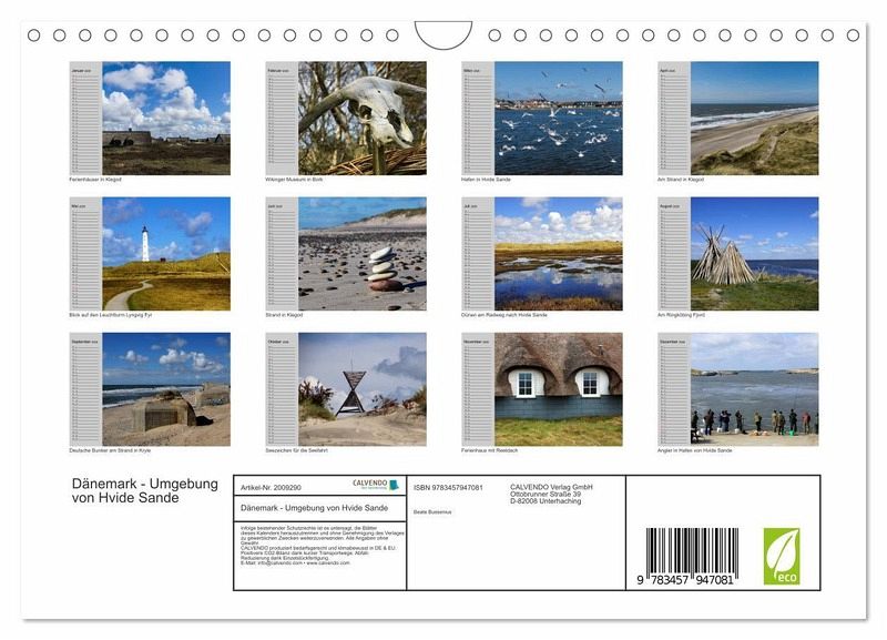 QUALITÄT - Hochwertiger Fotokalender mit 12 wunderschönen Motiven auf lichtbeständigem Bilderdruckpapier, robuste Spiralbindung mit Aufhängebügel.NACHHALTIG - deutliche Abfallreduzierung durch bedarfsgerechte Einzelstückfertigung, umweltfreundliches FSC-zertifiziertes Papier, Produktion in Deutschland, klimabewusste Logistik.PERFEKTES GESCHENK - Kalender für Freunde und Familie, für Kinder und Erwachsene, jung und alt, zu Weihnachten, Geburtstag oder zwischendurch.VIELFALT - Bildkalender in verschiedenen Formaten, z.B. DIN A5, DIN A4, DIN A3 sowie DIN A2. Ob Naturmotiv, Gemälde oder Fotos, ideal für ein persönliches Wohlfühlambiente.Ein beliebter Ferienort an Jütlands Küste - Hvide Sande von Autor(in): Fotine