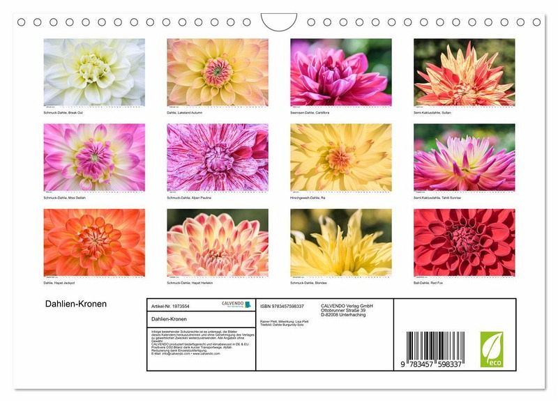 QUALITÄT - Hochwertiger Fotokalender mit 12 wunderschönen Motiven auf lichtbeständigem Bilderdruckpapier, robuste Spiralbindung mit Aufhängebügel.NACHHALTIG - deutliche Abfallreduzierung durch bedarfsgerechte Einzelstückfertigung, umweltfreundliches FSC-zertifiziertes Papier, Produktion in Deutschland, klimabewusste Logistik.PERFEKTES GESCHENK - Kalender für Freunde und Familie, für Kinder und Erwachsene, jung und alt, zu Weihnachten, Geburtstag oder zwischendurch.VIELFALT - Bildkalender in verschiedenen Formaten, z.B. DIN A5, DIN A4, DIN A3 sowie DIN A2. Ob Naturmotiv, Gemälde oder Fotos, ideal für ein persönliches Wohlfühlambiente.Die Blüten von Dahlien in strahlend schönen Bildern. von Autor(in): Rainer Plett