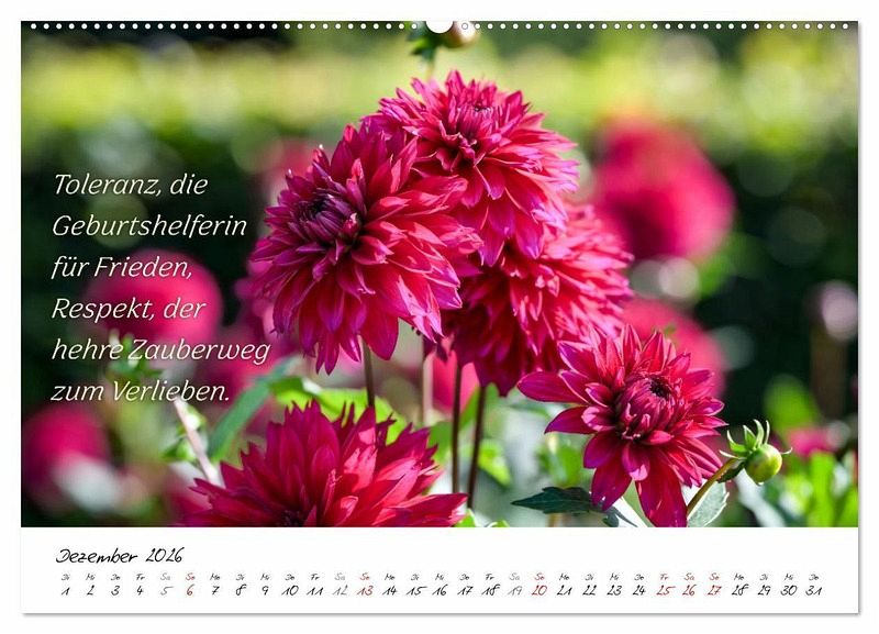 Erleben Sie die Schönheit der Dahlien in diesem vom Sonnenlicht durchfluteten Kalender. Die Vielfalt und Farbenpracht der wunderschönen Blumen werden hervorgehoben durch zauberhaft klingende Poesie. Eine Herzensfreude für Blumenliebhaber.