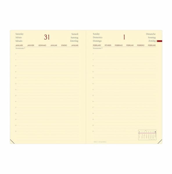 Quo Vadis - Terminkalender - 2026 - Daily 21 Prestige - Tageskalender - Mehrsprachig - Silk - Schwarz - Jan/Dez - 13x21 cm - Clairef ontaine-Papier Elfenbein - Hergestellt in Frankreich Tageskalender, der 1 Tag pro Seite zeigt und viel Raum für Notizen lässt Seiten mit hilfreichen Informationen (Jahreskalender, nützliche Daten usw.) Papier Clairefontaine, Elfenbein, für ein glattes und flüssiges Schreibgefühl, perforierte abreißbare Ecken für eine einfache Orient ierung