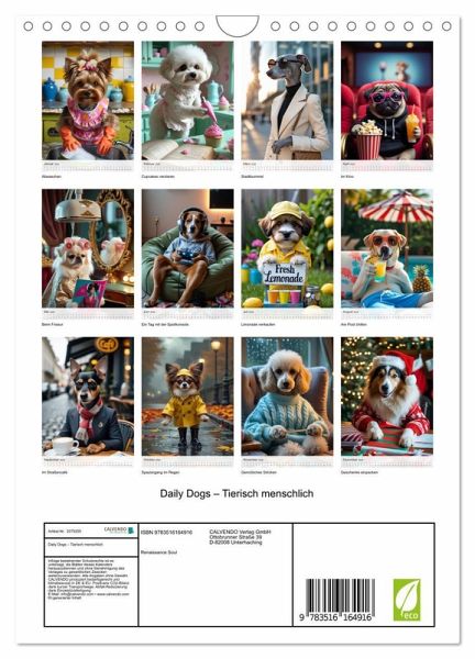 Was wäre, wenn Hunde unseren Alltag übernehmen? Sie würden Cupcakes backen, Geschenke einpacken, sich im Café entspannen oder im Kino mit Popcorn und Slushie verwöhnen lassen! Mit viel Herz und Humor feiern diese Vierbeiner die kleinen Freuden des Lebens. Ein Kalender voller liebevoller Szenen - für alle, die Hunde lieben und sich jeden Tag ein Lächeln ins Haus holen möchten.