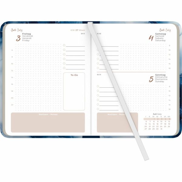 Ansprechendes Design: Edles Marmor-Design ideal für alle, die Wert auf ein modernes und elegantes Äußeres legenUmfassende Organisation: 352 Seiten mit 1 Tag pro Seite, Zeiteinteilung von 06 22 Uhr, To-Do-Liste und zusätzlichem NotizbereichPraktische Wochenendlösung: Samstag und Sonntag kompakt auf einer Seite mit Zeiteinteilung von 08 18 UhrÜbersichtliche Zusatzseiten: Jahres- und Monatsübersichten für 2026 & 2027, Habit Tracker, Adress- und NotizbereichInternational nutzbar: 4-sprachiges Kalendarium (DE/FR/IT/GB) mit Feiertagen für DE/AT/CH/FR/IT/NL/LU/GBHandliches Format: Kompakte A6-Größe (11×15 cm) ideal für unterwegs und den täglichen GebrauchZusatzinfos für den Alltag: Pollenflugkalender, Postentgelte, Internetadressen, TelefonvorwahlenNachhaltig produziert: Mit umweltfreundlichen Soja-Druckfarben gefertigt