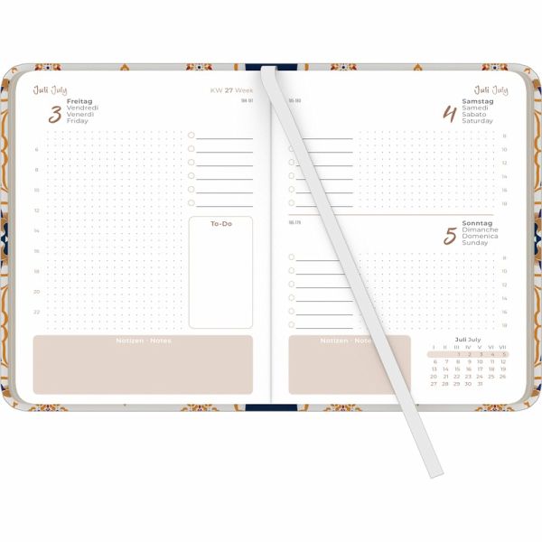 Edles Design: Orientalischer Einband mit Elefantenmotiv ideal für Liebhaber eleganter & exotischer MusterViel Platz für Eintragungen: 352 Seiten mit 1 Tag pro Seite, Zeiteinteilung 06 22 Uhr, To-Do-Liste & zusätzlichem NotizbereichPraktische Wochenendlösung: Samstag & Sonntag kompakt auf einer Seite mit Zeiteinteilung 08 18 UhrÜbersichtliche Zusatzseiten: Jahres- & Monatsübersichten 2026 & 2027, Habit Tracker, Adress- und NotizbereichInternational einsetzbar: 4-sprachiges Kalendarium (DE/FR/IT/GB) mit Feiertagen für DE/AT/CH/FR/IT/NL/LU/GBKompaktes Format: A6 (ca. 11×15 cm) perfekt für Handtasche, Rucksack oder SchreibtischNützliche Extras: Pollenflugkalender, Postentgelte, Internetadressen, internationale TelefonvorwahlenNachhaltig gedruckt: Mit umweltfreundlichen Soja-Druckfarben