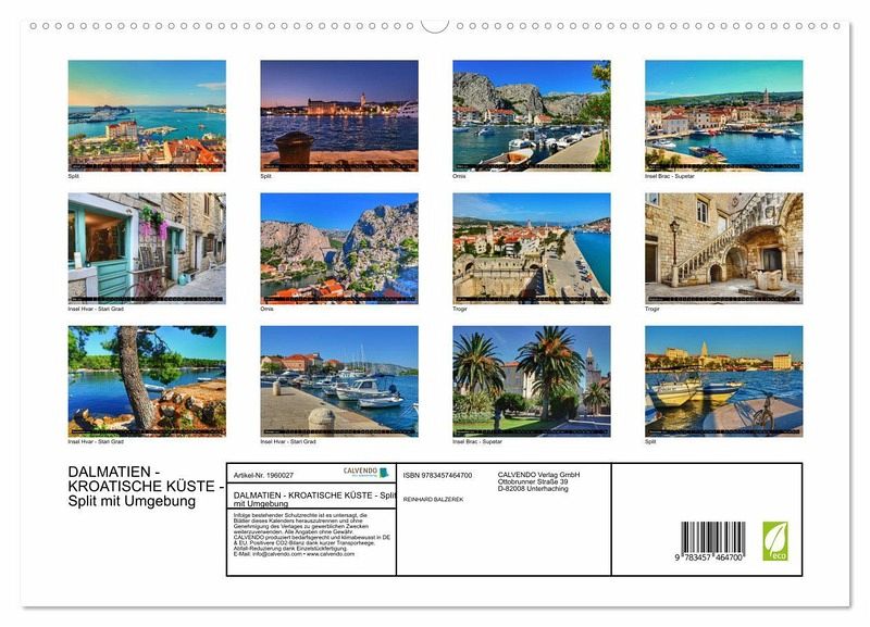 Dieser fantastischer Kalender von Reinhard Balzerek zeigt die Inseln Brac, Hvar, Split und Umgebung.