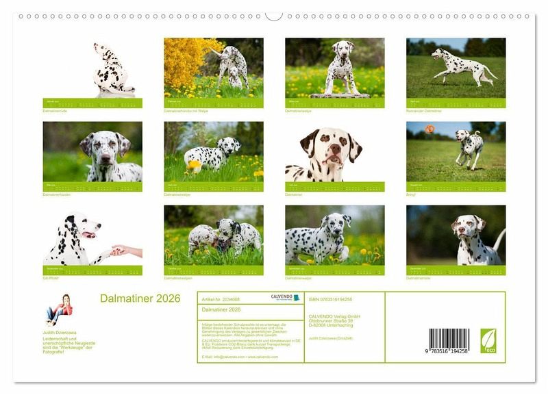 PREMIUM-LINIE - Brillanter Fotokalender mit 12 wunderschönen Motiven, Kunstdruck in Hochglanz in Museumsqualität.QUALITÄT - edle Materialien, stabile Rückwand mit 2 innovativen Einstecktaschen für eine optimale Präsentation an der Wand.NACHHALTIG - deutliche Abfallreduzierung durch bedarfsgerechte Einzelstückfertigung, umweltfreundliches FSC-zertifiziertes Papier, Produktion in Deutschland, klimabewusste Logistik.PERFEKTES GESCHENK - Kalender für Freunde und Familie, für Kinder und Erwachsene, jung und alt, zu Weihnachten, Geburtstag oder zwischendurch.Verschiedene Motive von Dalmatiner-Hunden von Autor(in): DoraZett