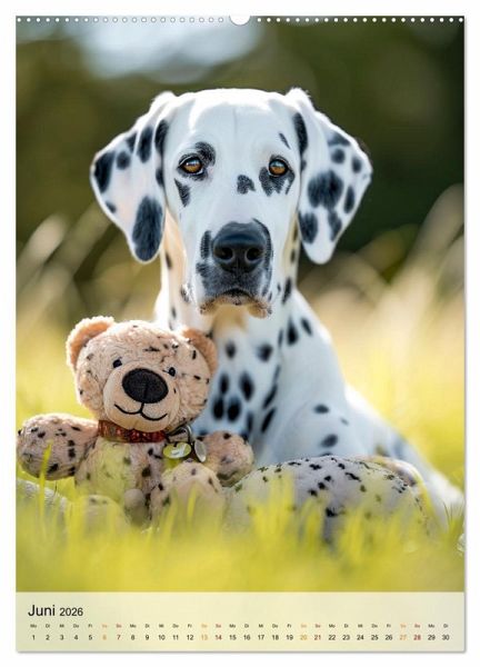 Tauchen Sie ein in ein Jahr voller Dalamtiner-Zauber. Jeden Monat erleben Sie, dass diese mittelgroßen bis großen Schönheiten mit ihrem unverwechselbaren schwarz-weißen Fell die perfekte Mischung aus Familienliebe und Begeisterung für die Natur sind. Genießen Sie die ruhigen, kuscheligen Momente zu Hause, während sich diese Hunde draußen in lebhafte, topfitte Begleiter verwandeln. Ob sie neben dem Fahrrad herlaufen, joggen, schwimmen oder apportieren - Dalmatiner strahlen Energie und Verspieltheit aus. Der Fotokünstler Peter Roder hat fantastische KI-Bilder gestaltet. Zwölf wunderschöne Bilder, die nicht nur Hundefans begeistern.