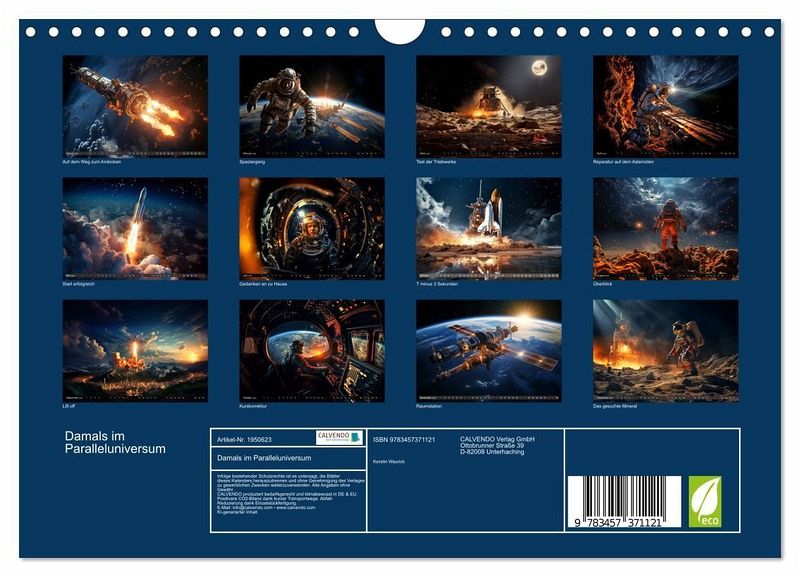 Tauchen Sie ein in ein faszinierendes Paralleluniversum, in dem die Raumfahrt der 1960er bis 1980er Jahre eine ähnliche und doch ganz andere Dimension erreicht hat. Dieser atemberaubende Kalender präsentiert Ihnen eine Sammlung von Bildern, die von der Raumfahrt in einem alternativen Universum inspiriert sind. Betrachten Sie die Bilder und lassen Sie Ihrer Fantasie freien Lauf, während Sie sich vorstellen, wie die Geschichte der Raumfahrt in diesem Paralleluniversum verlaufen ist.