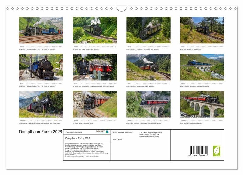QUALITÄT - Hochwertiger Fotokalender mit 12 wunderschönen Motiven auf lichtbeständigem Bilderdruckpapier, robuste Spiralbindung mit Aufhängebügel.NACHHALTIG - deutliche Abfallreduzierung durch bedarfsgerechte Einzelstückfertigung, umweltfreundliches FSC-zertifiziertes Papier, Produktion in Deutschland, klimabewusste Logistik.PERFEKTES GESCHENK - Kalender für Freunde und Familie, für Kinder und Erwachsene, jung und alt, zu Weihnachten, Geburtstag oder zwischendurch.VIELFALT -Bildkalender in verschiedenen Formaten, z.B. DIN A5, DIN A4, DIN A3 sowie DIN A2. Ob Naturmotiv, Gemälde oder Fotos, ideal für ein persönliches Wohlfühlambiente.Fahrt mit der DFB - Dampfbahn Furka Bergstrecke - in den Alpen von Autor(in): Alois J. Koller