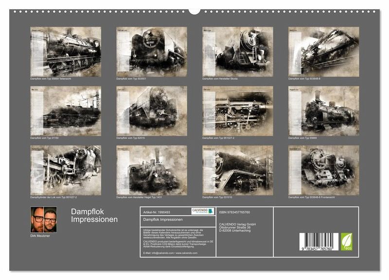 PREMIUM-LINIE - Brillanter Fotokalender mit 12 wunderschönen Motiven, Kunstdruck in Hochglanz in Museumsqualität.QUALITÄT - edle Materialien, stabile Rückwand mit 2 innovativen Einstecktaschen für eine optimale Präsentation an der Wand.NACHHALTIG - deutliche Abfallreduzierung durch bedarfsgerechte Einzelstückfertigung, umweltfreundliches FSC-zertifiziertes Papier, Produktion in Deutschland, klimabewusste Logistik.PERFEKTES GESCHENK - Kalender für Freunde und Familie, für Kinder und Erwachsene, jung und alt, zu Weihnachten, Geburtstag oder zwischendurch.Dampflok Impressionen im Vintage Style von Autor(in): Dirk Meutzner