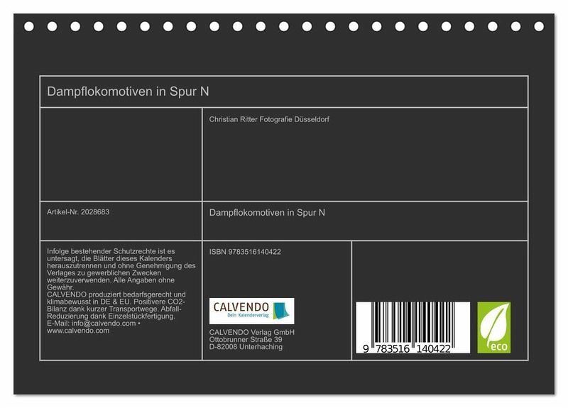 QUALITÄT - Hochwertiger Fotokalender mit 12 wunderschönen Motiven auf lichtbeständigem Bilderdruckpapier, robuste Spiralbindung.NACHHALTIG - deutliche Abfallreduzierung durch bedarfsgerechte Einzelstückfertigung, umweltfreundliches FSC-zertifiziertes Papier, Produktion in Deutschland, klimabewusste Logistik.PERFEKTES GESCHENK - Kalender für Freunde und Familie, für Kinder und Erwachsene, jung und alt, zu Weihnachten, Geburtstag oder zwischendurch.VIELFALT - Bildkalender in verschiedenen Formaten, z.B. DIN A5, DIN A4, DIN A3 sowie DIN A2. Ob Naturmotiv, Gemälde oder Fotos, ideal für ein persönliches Wohlfühlambiente.13 Motive von Dampfloks in der Spur N von Autor(in): Christian Ritter