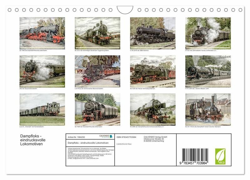 QUALITÄT - Hochwertiger Fotokalender mit 12 wunderschönen Motiven auf lichtbeständigem Bilderdruckpapier, robuste Spiralbindung mit Aufhängebügel.NACHHALTIG - deutliche Abfallreduzierung durch bedarfsgerechte Einzelstückfertigung, umweltfreundliches FSC-zertifiziertes Papier, Produktion in Deutschland, klimabewusste Logistik.PERFEKTES GESCHENK - Kalender für Freunde undFamilie, für Kinder und Erwachsene, jung und alt, zu Weihnachten, Geburtstag oder zwischendurch.VIELFALT - Bildkalender in verschiedenen Formaten, z.B. DIN A5, DIN A4, DIN A3 sowie DIN A2. Ob Naturmotiv, Gemälde oder Fotos, ideal für ein persönliches Wohlfühlambiente.Dampfloks für Lokfans von Autor(in): Liselotte Brunner-Klaus
