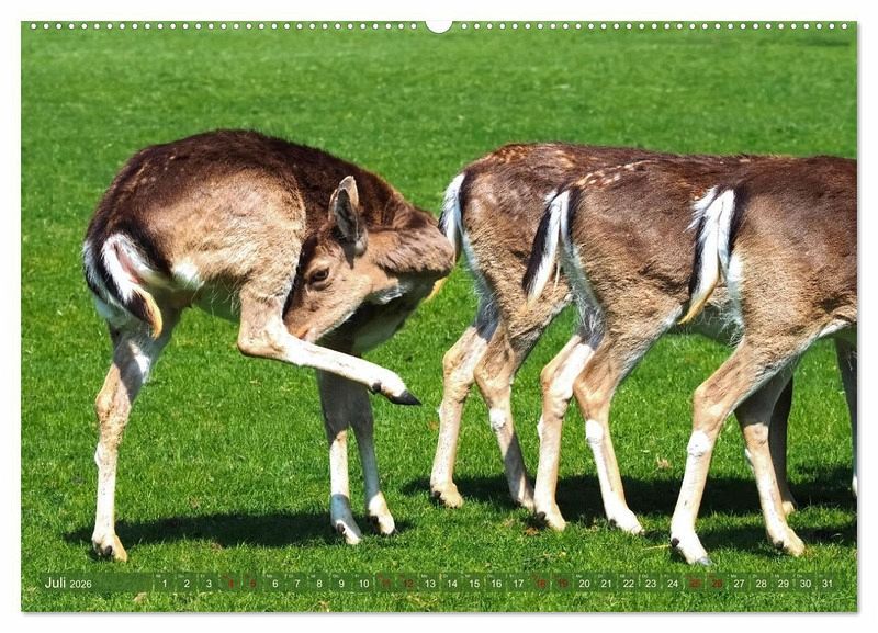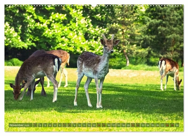 Hirsche, Ricken und ihre Kinder - in diesem bezaubernden Kalender beobachten Sie Damwild hautnah. Die Tiere des Waldes sind beliebt, sozial und einfach süß. Einzigartige Fotos und Lustige Beschreibungen führen dazu, dass Sie diesen Kalender lieben.