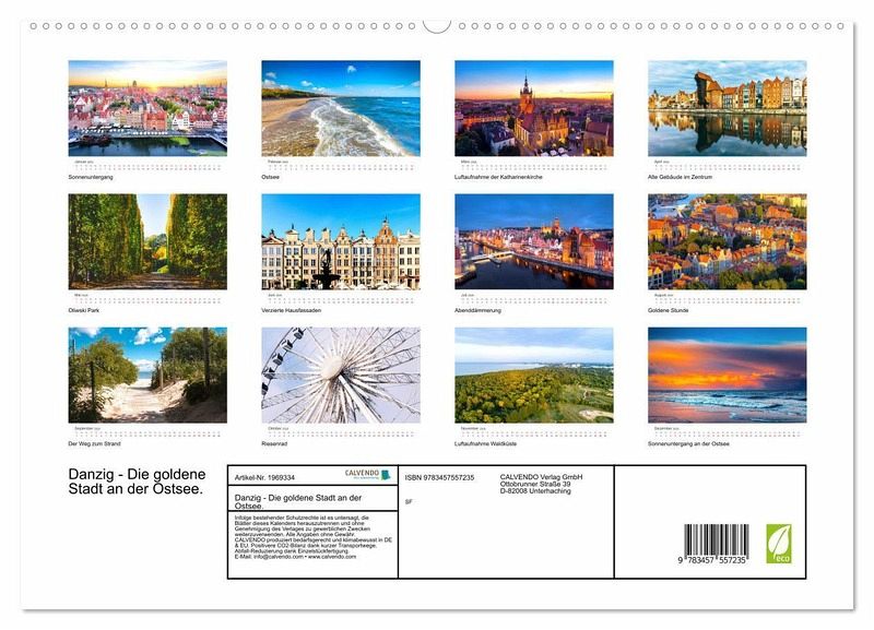 Egal ob Kultur oder Natur, in Danzig bekommt man beides. Bunte Häuser mit wunderschönen Fassaden im Zentrum und ewig lange Strände und ruhige Wälder mitten an der Ostsee. Was will man mehr? Lassen Sie sich von 12 hinreißenden Motiven von Danzig verzaubern und genießen Sie jedes Monat ein weiteres tolles Motiv.