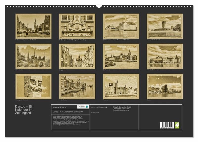 Danzig, das polnische Gdansk, befindet sich im Norden Polens. Die ehemalige Hansestadt empfängt Ihre Besucher mit einer liebevoll restaurierten Innenstadt und einer interessanten Umgebung. Der Fotograf Gunter Kirsch hat für diesen Kalender digitale Fotos so bearbeitet, dass sie den Eindruck vermitteln, aus einer längst vergangenen Epoche zu sein.