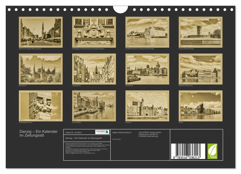 Danzig, das polnische Gdansk, befindet sich im Norden Polens. Die ehemalige Hansestadt empfängt Ihre Besucher mit einer liebevoll restaurierten Innenstadt und einer interessanten Umgebung. Der Fotograf Gunter Kirsch hat für diesen Kalender digitale Fotos so bearbeitet, dass sie den Eindruck vermitteln, aus einer längst vergangenen Epoche zu sein.