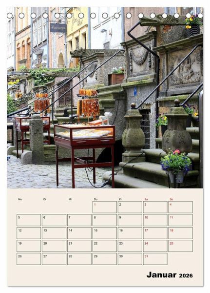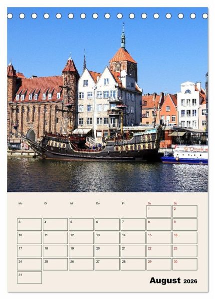Lassen Sie sich durch die faszinierende Geschichte und das atemberaubende Stadtbild Danzigs (Gdansk) verzaubern! Mit dem Kalender genießen Sie 12 Monate lang beeindruckende Fotografien, die das Herz und die Seele dieser einzigartigen Hansestadt einfangen. Jedes Kalenderblatt entführt Sie an einen anderen malerischen Ort: die lebendige Frauengasse, das Rechtstädtische Rathaus, den magischen Neptunbrunnen vor historischen Giebelhäusern und das romantische Ufer der Mottlau. Entdecken Sie jeden Monat neue Details, die den Charme dieser Stadt ausmachen.