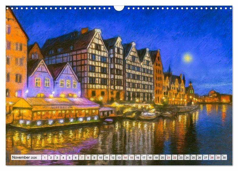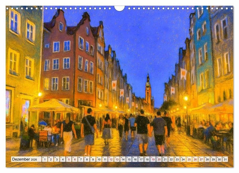Mit dem Kalender "Danzig entdecken - Sehenswürdigkeiten der polnischen Hansestadt" erleben Sie die eindrucksvollsten Orte dieser geschichtsträchtigen Stadt in künstlerisch gestalteten KI-gemalten Motiven. Von der Altstadt mit dem berühmten Krantor, über den Neptunbrunnen am Langen Markt bis hin zur Westerplatte oder der malerischen Frauengasse - jeder Monat präsentiert eine neue Facette Danzigs in liebevoller Kreideoptik.