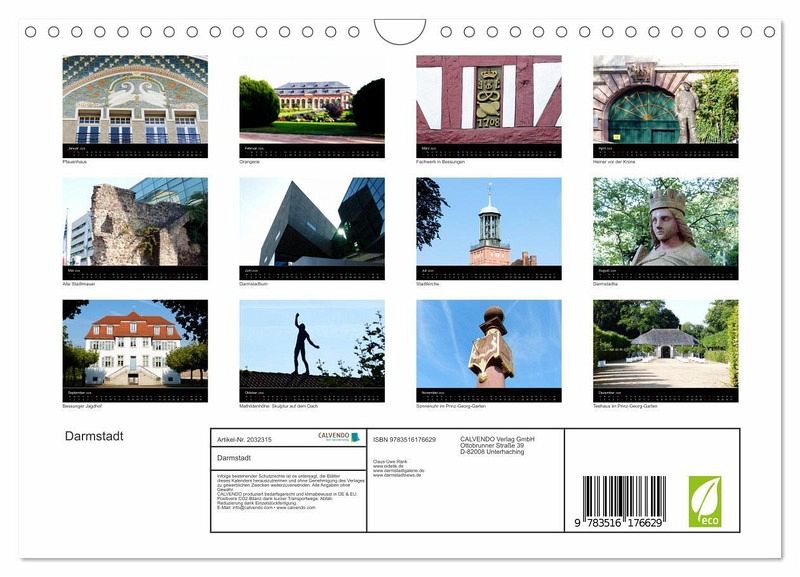 QUALITÄT - Hochwertiger Fotokalender mit 12 wunderschönen Motiven auf lichtbeständigem Bilderdruckpapier, robuste Spiralbindung mit Aufhängebügel.NACHHALTIG - deutliche Abfallreduzierung durch bedarfsgerechte Einzelstückfertigung, umweltfreundliches FSC-zertifiziertes Papier, Produktion in Deutschland, klimabewusste Logistik.PERFEKTES GESCHENK - Kalender für Freunde und Familie, für Kinder und Erwachsene, jung und alt, zu Weihnachten, Geburtstag oder zwischendurch.VIELFALT - Bildkalender in verschiedenen Formaten, z.B. DIN A5, DIN A4, DIN A3 sowie DIN A2. Ob Naturmotiv, Gemälde oder Fotos, ideal für ein persönliches Wohlfühlambiente.12 Motive aus Darmstadt von Autor(in): Claus-Uwe Rank
