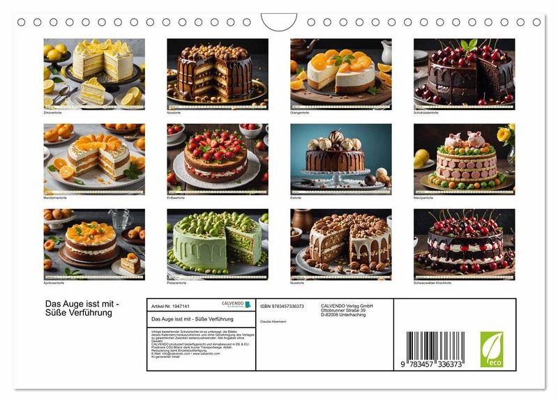 QUALITÄT - Hochwertiger Fotokalender mit 12 wunderschönen Motiven auf lichtbeständigem Bilderdruckpapier, robuste Spiralbindung mit Aufhängebügel.NACHHALTIG - deutliche Abfallreduzierung durch bedarfsgerechte Einzelstückfertigung, umweltfreundliches FSC-zertifiziertes Papier, Produktion in Deutschland, klimabewusste Logistik.PERFEKTES GESCHENK - Kalender für Freunde und Familie, für Kinder und Erwachsene, jung und alt, zu Weihnachten, Geburtstag oder zwischendurch.VIELFALT - Bildkalender in verschiedenen Formaten, z.B. DIN A5, DIN A4, DIN A3 sowie DIN A2. Ob Naturmotiv, Gemälde oder Fotos, ideal für ein persönliches Wohlfühlambiente.Konditorenkunst - schmackhafte Torten von Autor(in): Claudia Kleemann