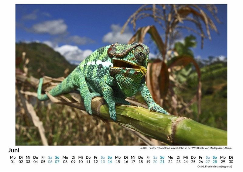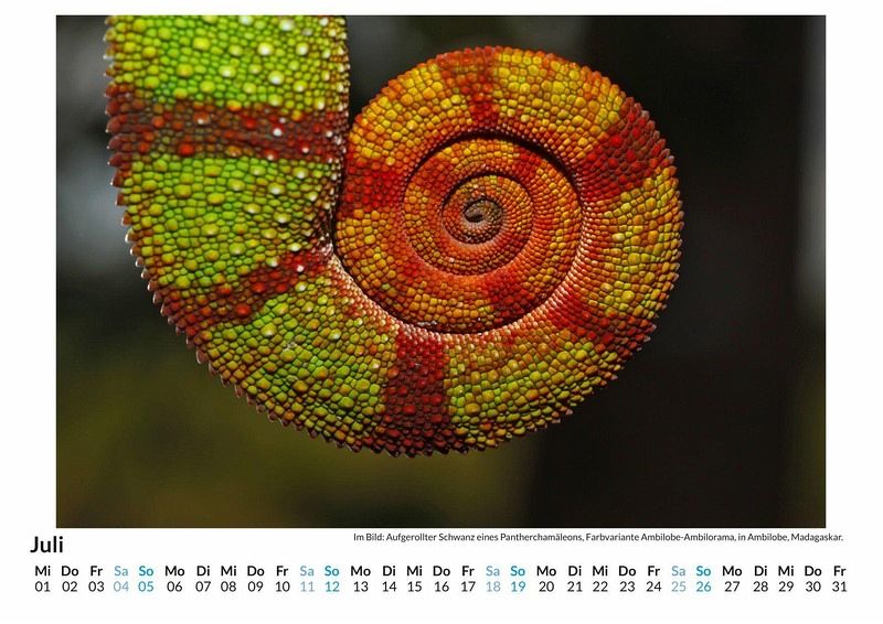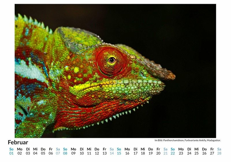 Entdecken Sie die faszinierende Welt der Chamäleons mit unserem exklusiven Monats-Wandkalender! Tauchen Sie ein in die Farbenpracht dieser einzigartigen Reptilien, die mit ihren beeindruckenden Farbwechseln und außergewöhnlichen Formen begeistern. Jedes der 12 sorgfältig ausgewählten Motive bringt die Schönheit und Vielfalt dieser Tiere direkt in Ihr Zuhause. Gedruckt auf hochwertigem, lichtbeständigem Bilderdruckpapier, bleibt die Brillanz der Farben das ganze Jahr über erhalten. Nachhaltig in Deutschland auf FSC-zertifiziertem Papier produziert, ist dieser Kalender nicht nur ein optisches Highlight, sondern auch ein umweltbewusster Begleiter. Perfekt für Tierliebhaber und Naturliebhaber gleichermaßen! Hochwertig Erleben Sie ein Jahr voller Eleganz mit unserem Premium-Fotokalender. Jedes der 12 Motive ist auf hochwertigem, lichtbeständigem Bilderdruckpapier gedruckt, um die Lebendigkeit jedes Bildes zu bewahren. Die robuste Spiralbindung gewährleistet Langlebigkeit und einfache Handhabung. Nachhaltig Unser Engagement für die Umwelt spiegelt sich in jedem Exemplar wider. Durch die Produktion auf Abruf reduzieren wir signifikant unseren Abfall. Wir verwenden ausschließlich umweltfreundliches, FSC-zertifiziertes Papier. Stolz gefertigt in Deutschland, achten wir bei unserer Logistik auf Klimaschutz, um unseren ökologischen Fußabdruck zu minimieren. Das ideale Geschenk Dieser Kalender ist das perfekte Präsent für jeden Anlass - ob Weihnachten, Geburtstage oder einfach als liebevolle Aufmerksamkeit zwischendurch. Geeignet für Freunde, Familie, Kinder und Erwachsene gleichermaßen, bereichert er jedes Zuhause mit seiner Vielfalt und Schönheit, unabhängig vom Alter der Beschenkten.