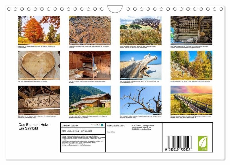 QUALITÄT - Hochwertiger Fotokalender mit 12 wunderschönen Motiven auf lichtbeständigem Bilderdruckpapier, robuste Spiralbindung mit Aufhängebügel.NACHHALTIG - deutliche Abfallreduzierung durch bedarfsgerechte Einzelstückfertigung, umweltfreundliches FSC-zertifiziertes Papier, Produktion in Deutschland, klimabewusste Logistik.PERFEKTES GESCHENK - Kalender für Freunde und Familie, für Kinder und Erwachsene, jung und alt, zu Weihnachten, Geburtstag oder zwischendurch.VIELFALT - Bildkalender in verschiedenen Formaten, z.B. DIN A5, DIN A4, DIN A3 sowie DIN A2. Ob Naturmotiv, Gemälde oder Fotos, ideal für ein persönliches Wohlfühlambiente.Das Element Holz ist ein Sinnbild für Wachstum, Verwurzelung und sanfte Wandelbarkeit, die aus dem Kern heraus neue Formen und Lebendigkeit hervorbringen. von Autor(in): Klaus Scholz
