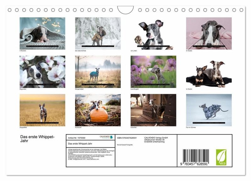 Die Tierfotografin Nicola Kassat (www.nikafotos.com) hat die ersten 12 Monate ihrer bleuen Whippet-Hündin liebevoll festgehalten. Whippets sind bunte Hunde, blau ist eher eine seltene Farbe. Die ersten 12 Monate im Leben der Hündin, ab der 4. Woche. Monat für Monat in ein neues Abenteuer, gut vorbereitet auf ein langes Leben.
