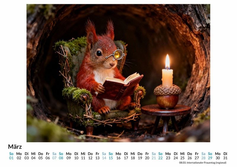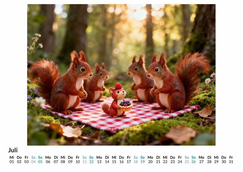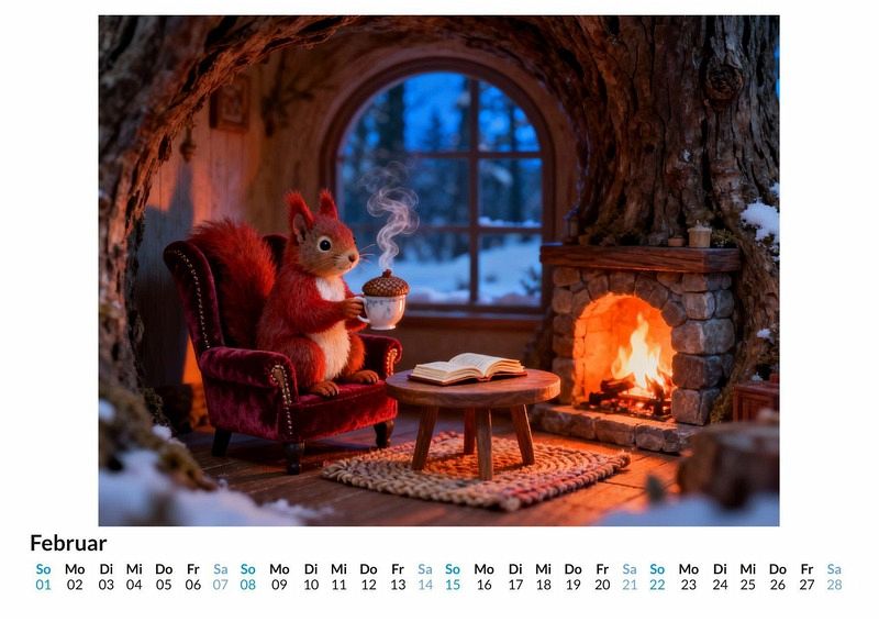 Haben Sie sich jemals gefragt, was Eichhörnchen tun, wenn niemand zusieht? Dieser Kalender lüftet das Geheimnis und gewährt einen Einblick in eine verborgene Welt, in der die flinken Nager ein erstaunlich menschliches Dasein führen. Dieser Kalender ist eine Freude: Für Liebhaber der pfiffigen Waldbewohner. Für alle, die Freude an fantasievollen und humorvollen Szenen haben. Für Suchende nach einem originellen Geschenk, das ein Lächeln ins Gesicht zaubert. Jedes Monatsblatt des Kalenders "Das geheime Leben der Eichhörnchen" enthüllt eine neue, sorgfältig arrangierte Szene. Man beobachtet die Tiere beim Teetrinken im Miniatursalon, beim Lesen in einer winzigen Bibliothek oder beim Musizieren am Klavier. Diese Bilderwelten wurden nicht in der Natur fotografiert, sondern durch die kreative Kraft digitaler Prozesse zum Leben erweckt. Jedes Detail, von der Tapete bis zur Teetasse, trägt zur Illusion eines geheimen Lebens bei, das sich direkt vor unserer Nase abspielt. Was der Kalender bietet: Zwölf einzigartige Monatsmotive voller Charme und Witz. Ein praktisches Kalendarium, das Platz für eigene Notizen bietet. Ein Jahr voller amüsanter Entdeckungen und kleiner Geschichten. Der Kalender ist eine Einladung, den Alltag für einen Moment zu vergessen und die fantasievolle Parallelwelt der Eichhörnchen zu entdecken. Ein Blick auf die Monatsblätter genügt, um die eigene Vorstellungskraft anzuregen und sich von der Kreativität der Szenen begeistern zu lassen.