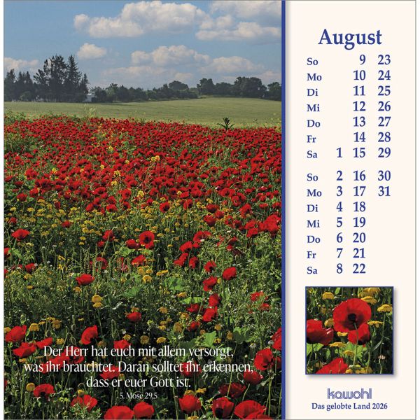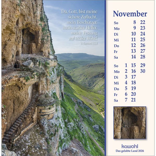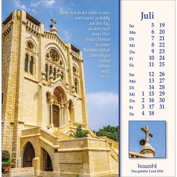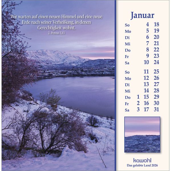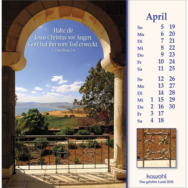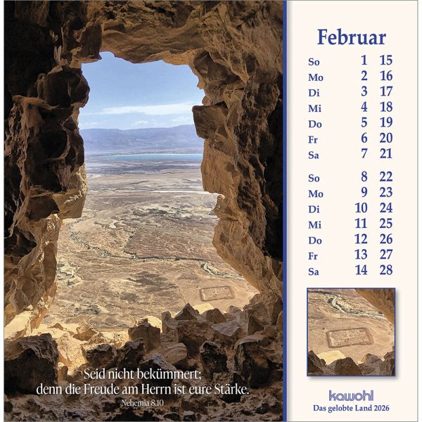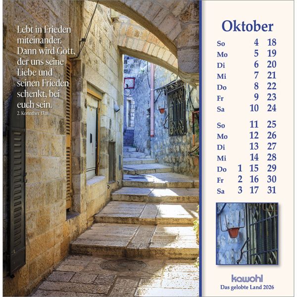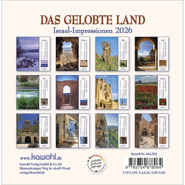 ISRAEL-IMPRESSIONEN - die Nähe Gottes spürenMit herausragenden Bildern, hilfreichen Begleitinformationen (inkl. jüdischen Feiertagen) und passenden Bibelworten möchte der Israel-Kalender den Betrachter mitnehmen auf die Spuren Jesu Christi. Er möchte einen Einblick geben in das Land des Volkes Gottes, einen Eindruck von der lebendigen Gegenwart Israels.Postkarten-Kalender:- mit Fotos aus Israel u. a. von W. Krebber- mit Bibelworten- Postkartenkarton, Spiralbindung- Jubiläumsausgabe - dieser Kalender erscheint bereits zum 40. Mal!