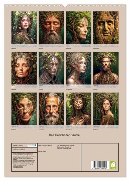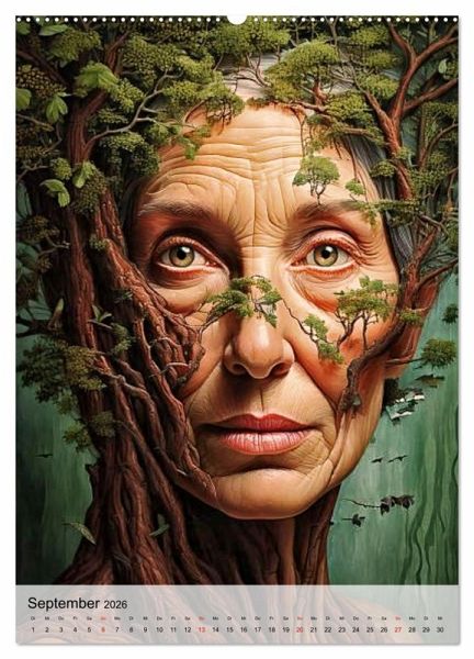 In Mythen und Legenden werden Bäume oft als Individuen dargestellt. Diese Annahme ist Programm unseres Bildkalenders, der zwölf Bilder zeigt, die auf surrealistische Art Gesichter mit Bäumen verbinden. Die Bilder sind mit Hilfe von künstlicher Intelligenz entstanden und haben einen mystischen Anstrich, der sie zu einem besonderen Kunstwerk machen. Dieser Kalender ist nicht nur ein praktisches Hilfsmittel, sondern auch ein Kunstobjekt, das Sie das ganze Jahr über erfreuen wird. Die Bilder sind so detailreich und ausdrucksstark, dass sie Sie zum Träumen einladen und Ihnen helfen, den Alltag zu vergessen. Lassen Sie sich also von der Schönheit der Natur und der Kraft der Kunst verzaubern.