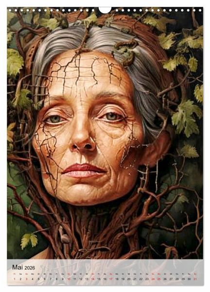 In Mythen und Legenden werden Bäume oft als Individuen dargestellt. Diese Annahme ist Programm unseres Bildkalenders, der zwölf Bilder zeigt, die auf surrealistische Art Gesichter mit Bäumen verbinden. Die Bilder sind mit Hilfe von künstlicher Intelligenz entstanden und haben einen mystischen Anstrich, der sie zu einem besonderen Kunstwerk machen. Dieser Kalender ist nicht nur ein praktisches Hilfsmittel, sondern auch ein Kunstobjekt, das Sie das ganze Jahr über erfreuen wird. Die Bilder sind so detailreich und ausdrucksstark, dass sie Sie zum Träumen einladen und Ihnen helfen, den Alltag zu vergessen. Lassen Sie sich also von der Schönheit der Natur und der Kraft der Kunst verzaubern.