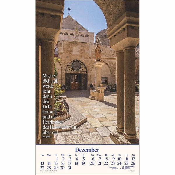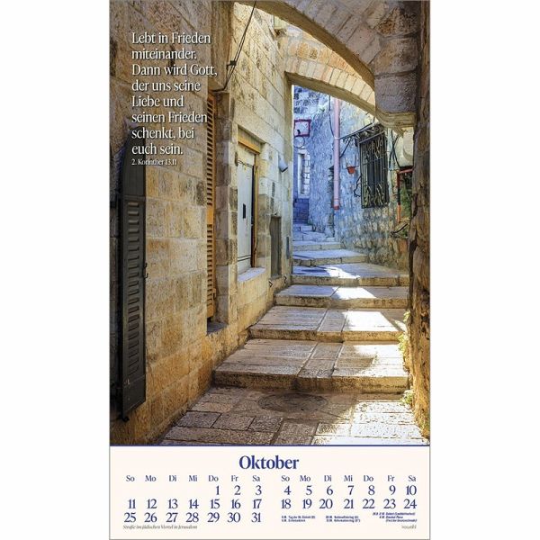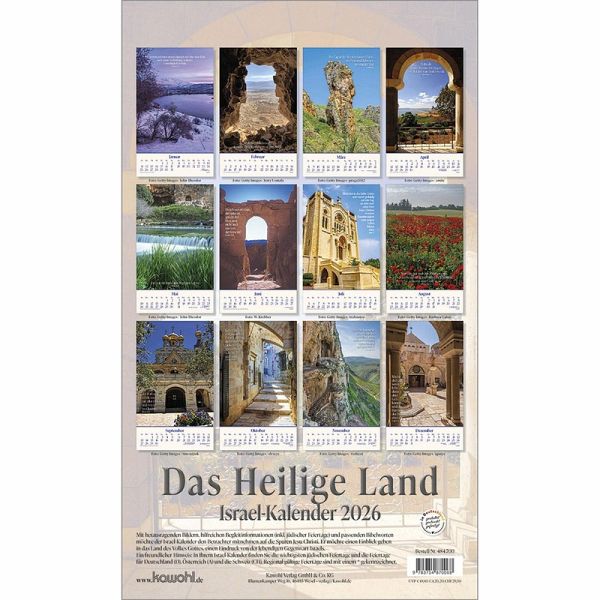 ISRAEL-IMPRESSIONEN - Die Nähe Gottes spürenMit herausragenden Bildern, hilfreichen Begleitinformationen (inkl. jüdischen Feiertagen) und passenden Bibelworten möchte der Israel-Kalender den Betrachter mitnehmen auf die Spuren Jesu Christi. Er möchte einen Einblick geben in das Land des Volkes Gottes, einen Eindruck von der lebendigen Gegenwart Israels.EIN WERTVOLLES GESCHENKWand-Kalender:- mit Fotos aus Israel u. a. von W. Krebber- mit Bibelworten- Kunstdruck