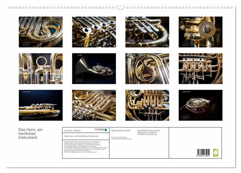 QUALITÄT - Hochwertiger Fotokalender mit 12 wunderschönen Motiven auf lichtbeständigem Bilderdruckpapier, robuste Spiralbindung mit Aufhängebügel.NACHHALTIG - deutliche Abfallreduzierung durch bedarfsgerechte Einzelstückfertigung, umweltfreundliches FSC-zertifiziertes Papier, Produktion in Deutschland, klimabewusste Logistik.PERFEKTES GESCHENK - Kalender für Freunde und Familie, für Kinder und Erwachsene, jung und alt, zu Weihnachten, Geburtstag oder zwischendurch.VIELFALT - Bildkalender in verschiedenen Formaten, z.B. DIN A5, DIN A4, DIN A3 sowie DIN A2. Ob Naturmotiv, Gemälde oder Fotos, ideal für ein persönliches Wohlfühlambiente.Jeden Monat ein anderes interessantes Bild dieses schönen Instrumentes von Autor(in): Christiane Calmbacher