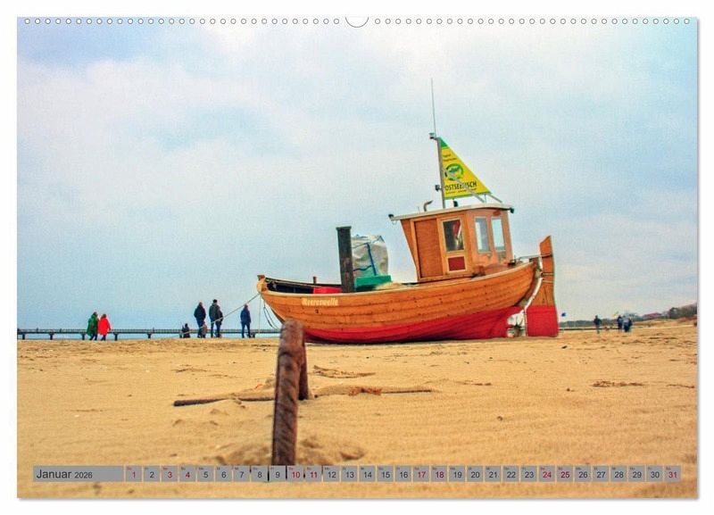 Januar: Fischkutter auf dem Ahlbecker Strand