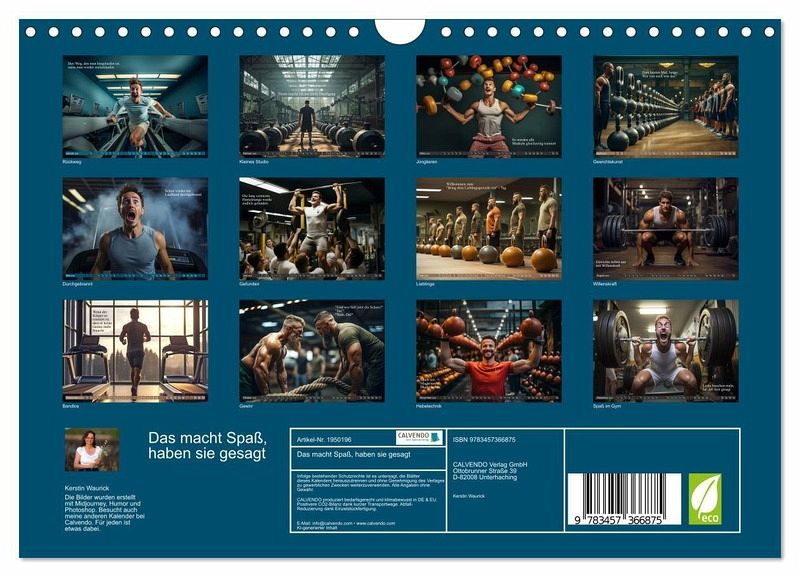 QUALITÄT - Hochwertiger Fotokalender mit 12 wunderschönen Motiven auf lichtbeständigem Bilderdruckpapier, robuste Spiralbindung mit Aufhängebügel.NACHHALTIG - deutliche Abfallreduzierung durch bedarfsgerechte Einzelstückfertigung, umweltfreundliches FSC-zertifiziertes Papier, Produktion in Deutschland, klimabewusste Logistik.PERFEKTES GESCHENK - Kalender für Freunde und Familie, für Kinder und Erwachsene, jung und alt, zu Weihnachten, Geburtstag oder zwischendurch.VIELFALT - Bildkalender in verschiedenen Formaten, z.B. DIN A5, DIN A4, DIN A3 sowie DIN A2. Ob Naturmotiv, Gemälde oder Fotos, ideal für ein persönliches Wohlfühlambiente.Was sich eine KI so vorstellt, wie es im Fitnessstudio zugeht von Autor(in): Kerstin Waurick