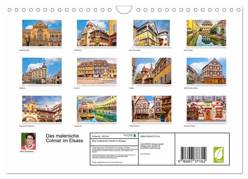 Dieser herausragende Kalender zeigt jeden Monat wunderschöne Motive von der bekanntesten Stadt im Elsass - Colmar. Das Altstadtbild wird geprägt von den typisch elsässischen Fachwerkhäusern aus dem Mittelalter, Klein-Venedig mit den Steinbrücken, der römisch-katholischen Stiftskirche und einem Schmuckstück der Renaissance - das Pfisterhaus und lädt zu einem Bummel ein. Lassen Sie sich inspirieren und gehen Sie mit auf eine Entdeckungsreise.
