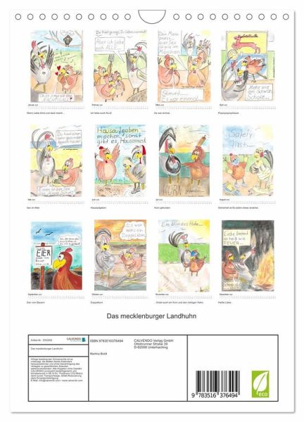 QUALITÄT - Hochwertiger Fotokalender mit 12 wunderschönen Motiven auf lichtbeständigem Bilderdruckpapier, robuste Spiralbindung mit Aufhängebügel.NACHHALTIG - deutliche Abfallreduzierung durch bedarfsgerechte Einzelstückfertigung, umweltfreundliches FSC-zertifiziertes Papier, Produktion in Deutschland, klimabewusste Logistik.PERFEKTES GESCHENK - Kalender für Freunde und Familie, für Kinder und Erwachsene, jung und alt, zu Weihnachten, Geburtstag oder zwischendurch.VIELFALT - Bildkalender in verschiedenen Formaten, z.B. DIN A5, DIN A4, DIN A3 sowie DIN A2. Ob Naturmotiv, Gemälde oder Fotos, ideal für ein persönliches Wohlfühlambiente.12 witzige Seiten über das "Mecklenburger Landhuhn" von Autor(in): Das mecklenburger Landhuhn