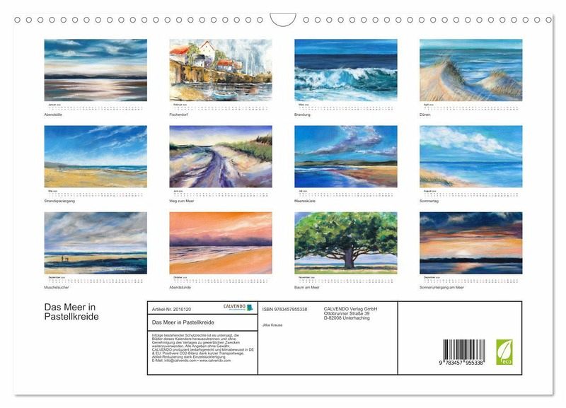 QUALITÄT - Hochwertiger Fotokalender mit 12 wunderschönen Motiven auf lichtbeständigem Bilderdruckpapier, robuste Spiralbindung mit Aufhängebügel.NACHHALTIG - deutliche Abfallreduzierung durch bedarfsgerechte Einzelstückfertigung, umweltfreundliches FSC-zertifiziertes Papier, Produktion in Deutschland, klimabewusste Logistik.PERFEKTES GESCHENK - Kalender für Freunde und Familie, für Kinder und Erwachsene, jung und alt, zu Weihnachten, Geburtstag oder zwischendurch.VIELFALT - Bildkalender in verschiedenen Formaten, z.B. DIN A5, DIN A4, DIN A3 sowie DIN A2. Ob Naturmotiv, Gemälde oder Fotos, ideal für ein persönliches Wohlfühlambiente.Meeresansichten als Pastellgemälde von Autor(in): Jitka Krause
