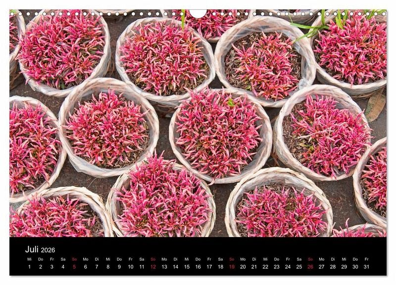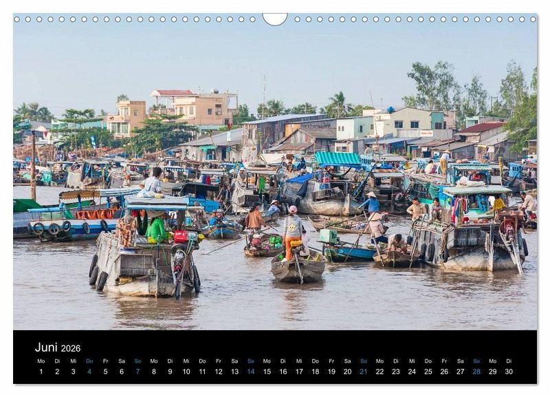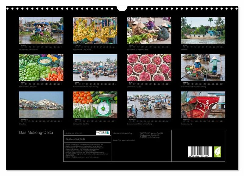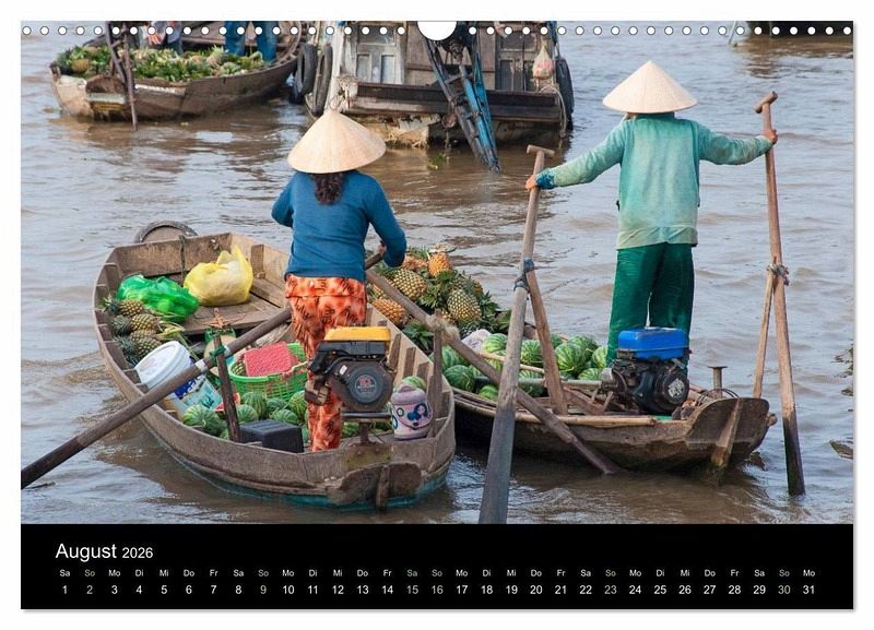 Das Mekong-Delta im Süden Vietnams ist eine der fruchtbarsten Regionen der Erde und kann zu recht als "Garten der Welt" bezeichnet werden. Die zahlreichen schwimmenden Märkte, die üppige Vegetation, die Vielfalt der landwirtschaftlichen Produkte sowie die freundlichen Einwohner des Mekong-Deltas machen dieses Wasserlabyrinth zu einem faszinierenden Ort. Mit diesem Kalender erleben Sie eine Fotoreise durch ein tropisches Paradies.