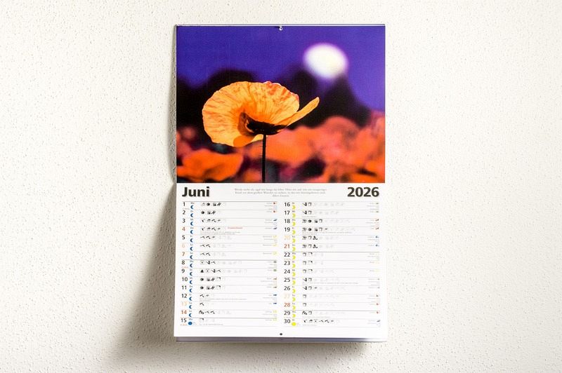 Der Wandkalender bietet 12 eindrucksvolle Landschaftsfotos mit Mond und dazu alle Informationen für jeden Monat übersichtlich auf einen Blick. Mit allen wichtigen Symbolen und Hinweisen für ein Leben nach dem Mond.