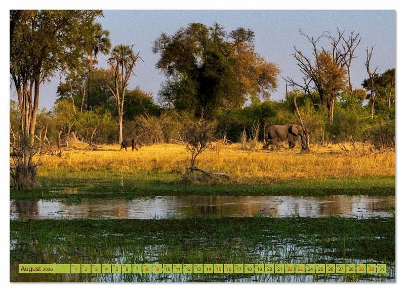 Erleben Sie die atemberaubende Schönheit des Okavangodeltas in zwölf faszinierenden Monatsmotiven. Jeder Kalender zeigt die einzigartige Tierwelt, magische Wasserlandschaften und unberührte Natur dieses UNESCO-Welterbes. Lassen Sie sich Monat für Monat in eine der letzten großen Wildnisregionen Afrikas entführen. Ideal für Naturfreunde, Reiselustige und alle, die sich nach Abenteuer sehnen.