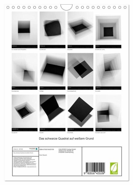 QUALITÄT - Hochwertiger Fotokalender mit 12 wunderschönen Motiven auf lichtbeständigem Bilderdruckpapier, robuste Spiralbindung mit Aufhängebügel.NACHHALTIG - deutliche Abfallreduzierung durch bedarfsgerechte Einzelstückfertigung, umweltfreundliches FSC-zertifiziertes Papier, Produktion in Deutschland, klimabewusste Logistik.PERFEKTES GESCHENK - Kalender für Freunde und Familie, für Kinder und Erwachsene, jung und alt, zu Weihnachten, Geburtstag oder zwischendurch.VIELFALT - Bildkalender in verschiedenen Formaten, z.B. DIN A5, DIN A4, DIN A3 sowie DIN A2. Ob Naturmotiv, Gemälde oder Fotos, ideal für ein persönliches Wohlfühlambiente.Eine fotografische Serie mit dem Thema Quadrat von Autor(in): Sven Rausch