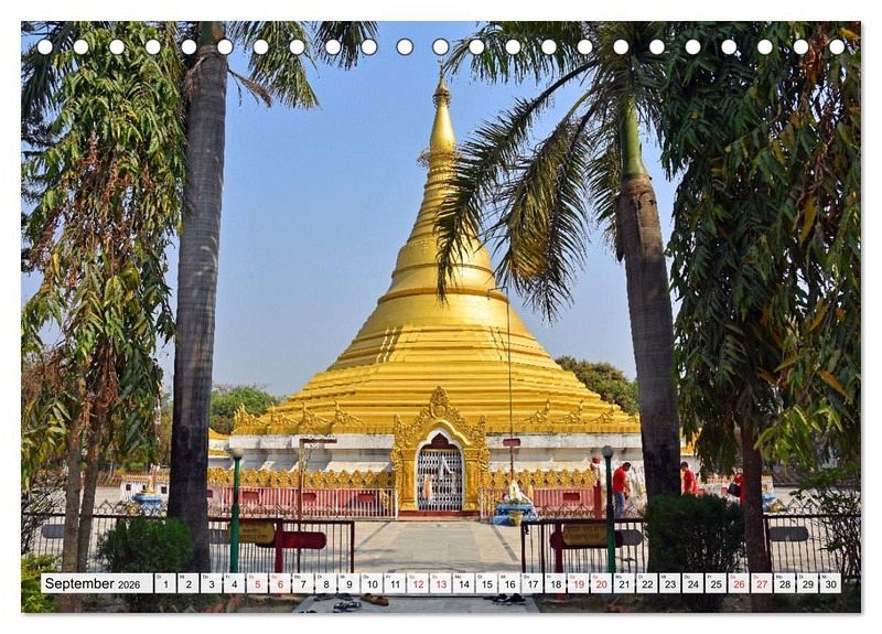 September: Die Myanmar Golden Monastery ist einer von unzähligen Tempeln im Friedenspark von Buddhas Geburtsort Lumbini