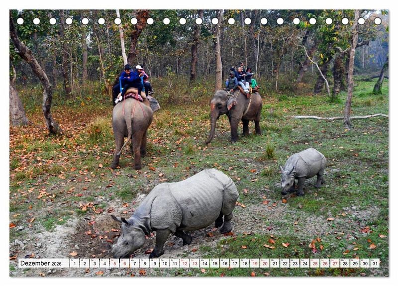 Dezember: Höhepunkt von Elefantentouren im Chitwan Nationalpark sind Treffen mit hier beheimateten Panzernashörnern