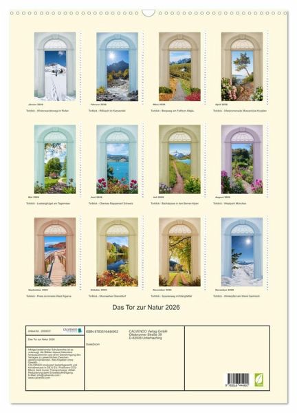 QUALITÄT - Hochwertiger Fotokalender mit 12 wunderschönen Motiven auf lichtbeständigem Bilderdruckpapier, robuste Spiralbindung mit Aufhängebügel.NACHHALTIG - deutliche Abfallreduzierung durch bedarfsgerechte Einzelstückfertigung, umweltfreundliches FSC-zertifiziertes Papier, Produktion in Deutschland, klimabewusste Logistik.PERFEKTES GESCHENK - Kalender für Freunde und Familie, für Kinder und Erwachsene, jung und alt, zu Weihnachten, Geburtstag oder zwischendurch.VIELFALT - Bildkalender in verschiedenen Formaten, z.B. DIN A5, DIN A4, DIN A3 sowie DIN A2. Ob Naturmotiv, Gemälde oder Fotos, ideal für ein persönliches Wohlfühlambiente.Blick durch ein altes Tor auf verschiedene Landschaften von Autor(in): SusaZoom