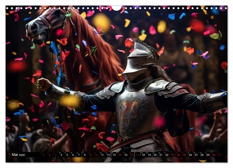 Tauche ein in die Ära tapferer Ritter und epischer Kämpfe! "Das Turnier: Wo Ehre und Tapferkeit zu Legenden werden" entführt dich in die faszinierende Welt mittelalterlicher Ritterturniere. Erlebe die Anspannung, wenn edle Recken in heldenhaften Wettkämpfen um Ruhm und Ehre ringen. Monat für Monat entfaltet sich die Pracht vergangener Zeiten in atemberaubenden Illustrationen. Ein unverzichtbarer Begleiter für Geschichts- und Abenteuerliebhaber. Sichere dir jetzt diesen einzigartigen Kalender und spüre den Puls der Ritterzeit! KI generierte, händisch bearbeitete Motive.