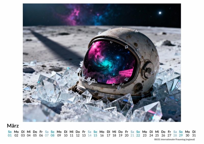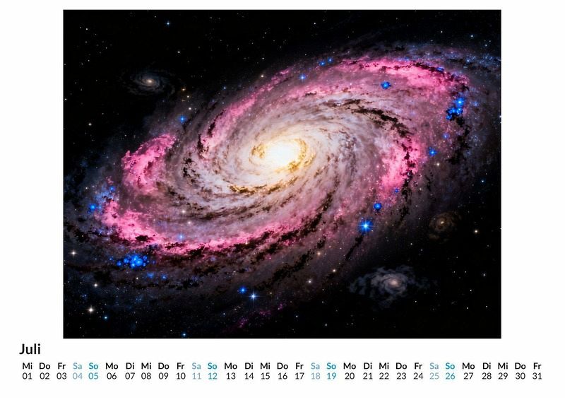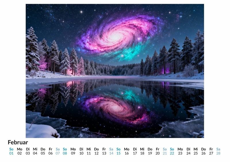 Jenseits der Grenzen unseres bekannten Sonnensystems beginnt eine Reise ins Unbekannte, zu Orten, die nur in der Fantasie existieren. Dieser Kalender fängt diese Visionen ein und präsentiert zwölf einzigartige Fenster in fremde Welten. Dieser Kalender ist optimal geeignet: * Für Liebhaber von Science Fiction und Fantasiewelten. * Für alle, die nach einem außergewöhnlichen Wandschmuck suchen. * Für Träumer, die den Blick gerne in die Ferne schweifen lassen. Der Kalender "Das Universum - Eine kosmische Reise" führt Monat für Monat durch kosmische Landschaften, die jenseits menschlicher Vorstellungskraft zu liegen scheinen. Leuchtende Gasnebel in unwirklichen Farben, Planeten mit kristallenen Ringen und Galaxien, deren Spiralen sich in ewiger Stille drehen. Jedes Monatsbild wurde durch das Zusammenspiel von kreativen Impulsen und einer digitalen Kreativität erschaffen, die aus reinen Daten neue Welten formt. Das Ergebnis sind Darstellungen, die weder gemalt noch fotografiert, sondern aus einer Idee heraus generiert wurden. Was der Kunde erwarten kann: * Zwölf fantasievolle Motive aus den Tiefen des Alls. * Ein praktisches Kalendarium für die Jahresplanung. * Ein dekoratives Element für jeden Raum. Dieser Kalender ist mehr als nur ein Zeitplaner. Er ist eine monatliche Expedition zu den Wundern eines fiktiven Kosmos. Eine Einladung, die Weiten der Fantasie zu erkunden und sich von der Schönheit unbekannter Sternensysteme inspirieren zu lassen.