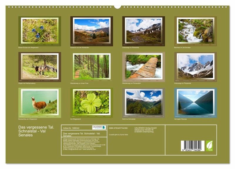 PREMIUM-LINIE - Brillanter Fotokalender mit 12 wunderschönen Motiven, Kunstdruck in Hochglanz in Museumsqualität.QUALITÄT - edle Materialien, stabile Rückwand mit 2 innovativen Einstecktaschen für eine optimale Präsentation an der Wand.NACHHALTIG - deutliche Abfallreduzierung durch bedarfsgerechte Einzelstückfertigung, umweltfreundliches FSC-zertifiziertes Papier, Produktion in Deutschland, klimabewusste Logistik.PERFEKTES GESCHENK - Kalender für Freunde und Familie, für Kinder und Erwachsene, jung und alt, zu Weihnachten, Geburtstag oder zwischendurch.Im Schnalstal in Südtirol eröffnet sich dem Besucher ein Tal der Ruhe, Naturschönheiten und Inspiration. von Autor(in): CrystalLights by Sylvia Seibl