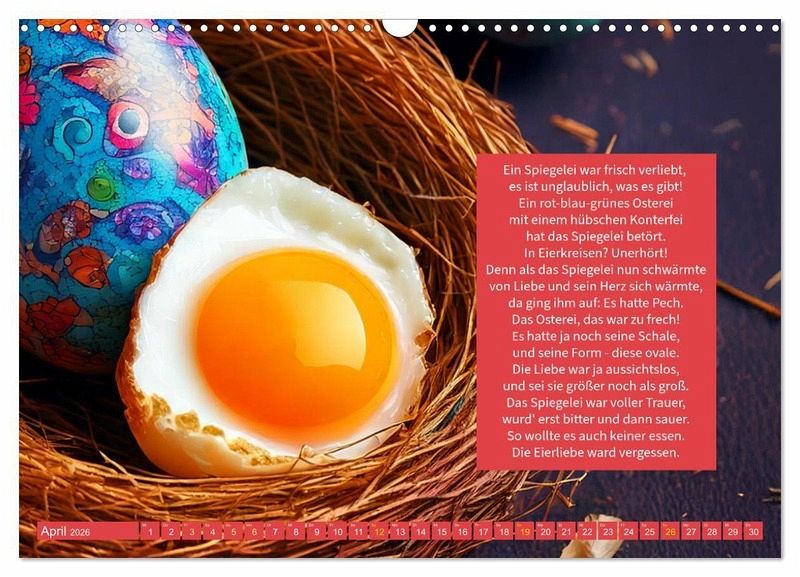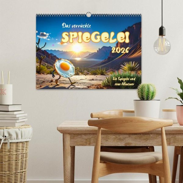 Dieser Kalender ist nicht nur ein Hingucker in Küche, Büro oder Wohnzimmer, sondern auch ein originelles Geschenk für Freunde, Familie oder Kollegen, die gerne schmunzeln. Das wandernde Spiegelei bringt Monat für Monat Farbe, Fantasie