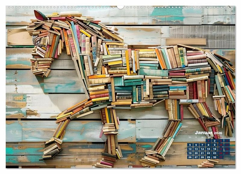 Januar: In der Stille der Bibliothek erwacht ein edles Ross aus flüsternden Geschichten und zauberhaften Träumen.