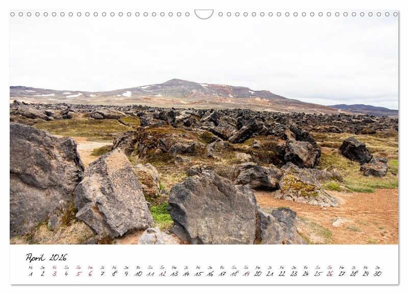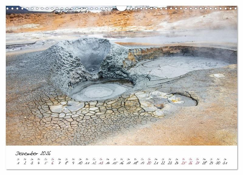 Die Insel Island entstand vor wenigen Millionen Jahren aufgrund von vulkanischen Prozessen im Untergrund. Und auch heute ist dieser Vulkanismus noch aktiv und begegnet einem überall auf der Insel. Aktive Vulkane wie der Fagradalsfjall im Süden Islands spucken Lava und in den Geothermalgebieten von Haukadalur und Hverir brodelt und dampft es aus der Erde. An kaum einem anderen Ort, kann man der feurigen Kraft unseres Planeten s nah kommen wie auf Island. Mit diesem Kalender begleitet sie die Kraft der Vulkane von Island durch das ganze Jahr.